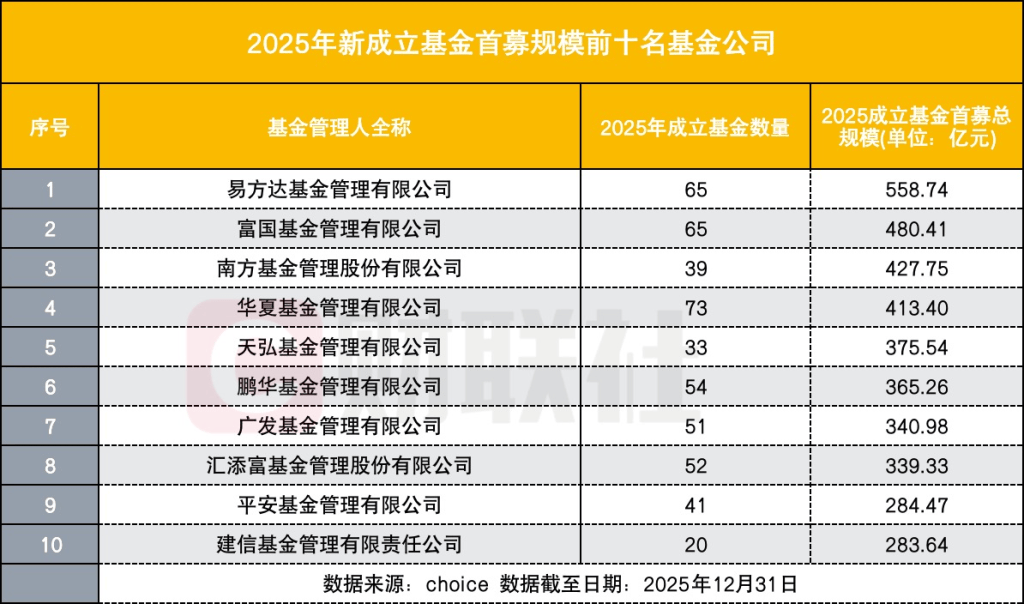 但从募资规模来看,2025年成立公募基金的首募规模合计为1.16万亿元,与2024年的1.18万亿元相比小幅下滑。